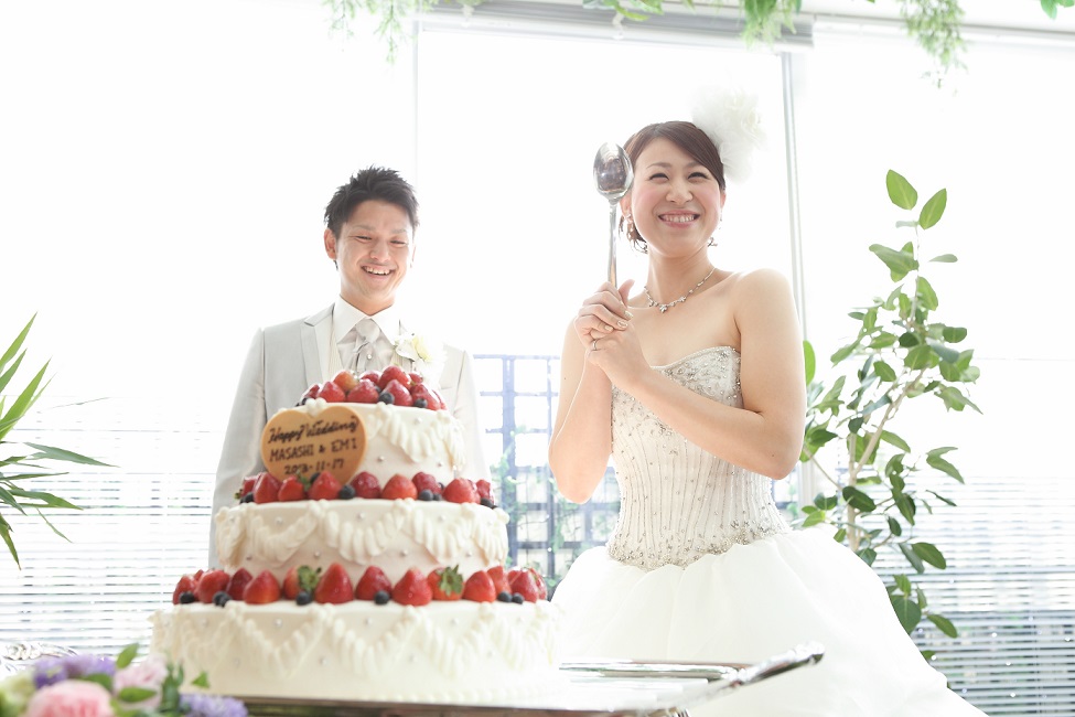披露宴ではケーキの食べさせあいに