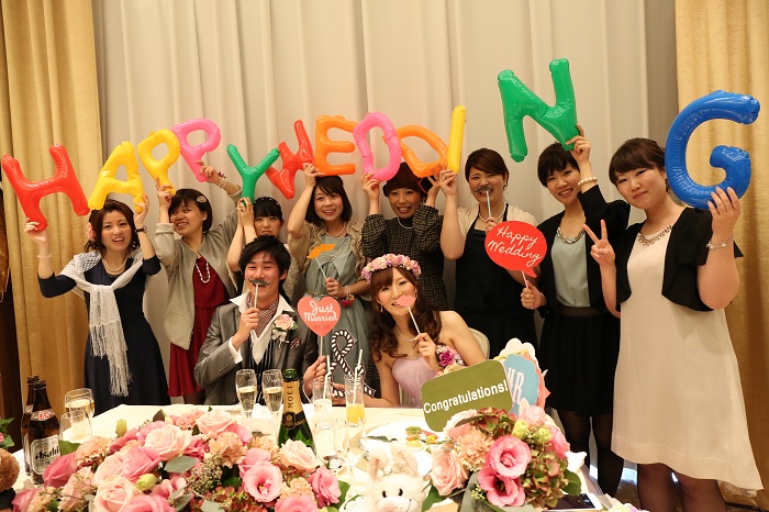 手作りグッズでいっぱいのパーティー会場は、お二人らしさ満載で、